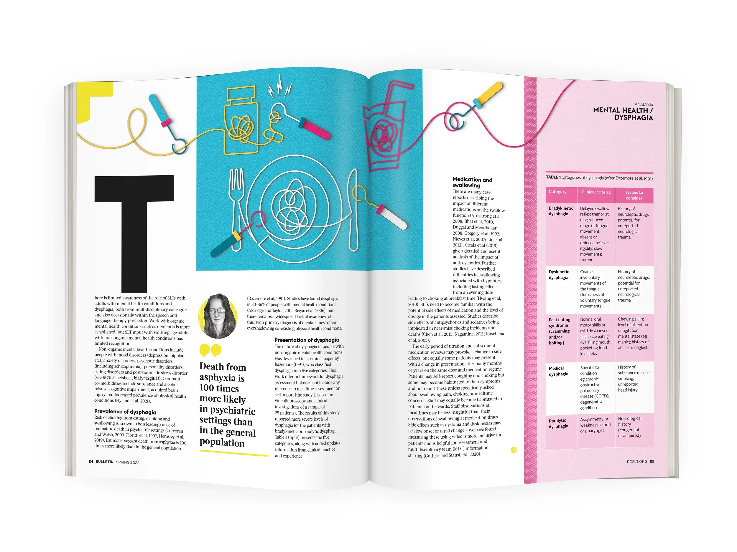 Design and layout of the award -winning monthly magazine for the Royal College of Speech and Language Therapists.
